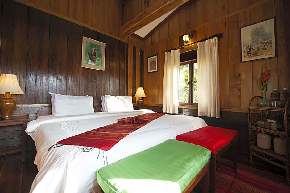 Largest room offers 2 spacious bedrooms, a large communal lounge and private bathroom. It comes with a kitchenette and terrace overlooking the Mekong landscape. Room can accommodate up to 6 guests.
